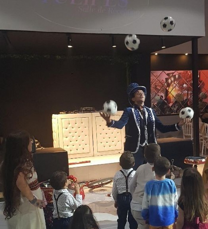L'animation de jonglage proposée par Polino est visuelle et interactive, captivant à la fois les petits et les grands lors d'événements tels que les Arbres de Noël, les Mariages ou les Anniversaires.